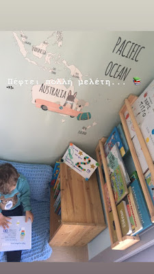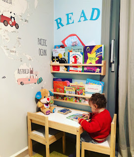 Όταν ο Γιώργος ήταν ενός έτους και προτιμούσε ο χώρος του παραμυθιού να είναι κάπως έτσι.. Τα ραφάκια είναι απο το ΙΚΕΑ στο τμήμα με τα παιδικά έπιπλα.