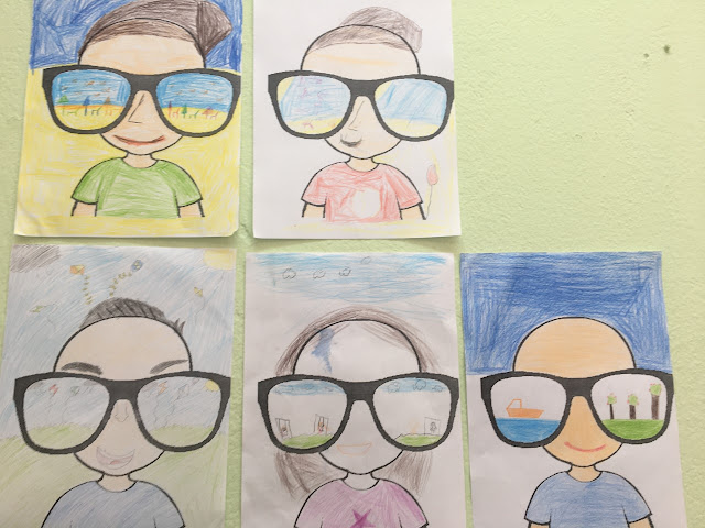 ένα παιδάκι με γυαλιά… Οι μαθητές μου έπρεπε να φανταστούν τι βλέπει το παιδί και να το αποτυπώσουν στα γυαλιά του.