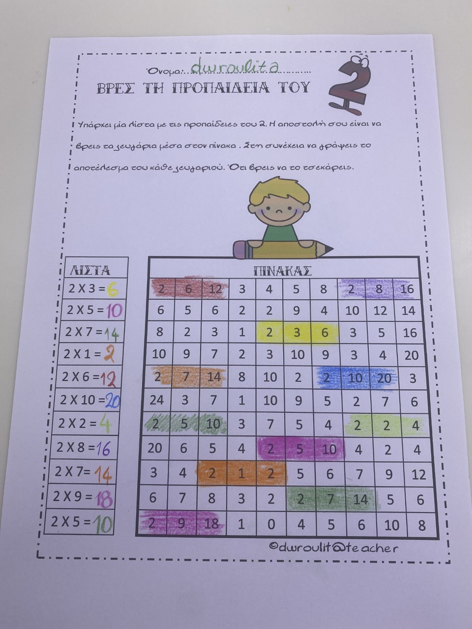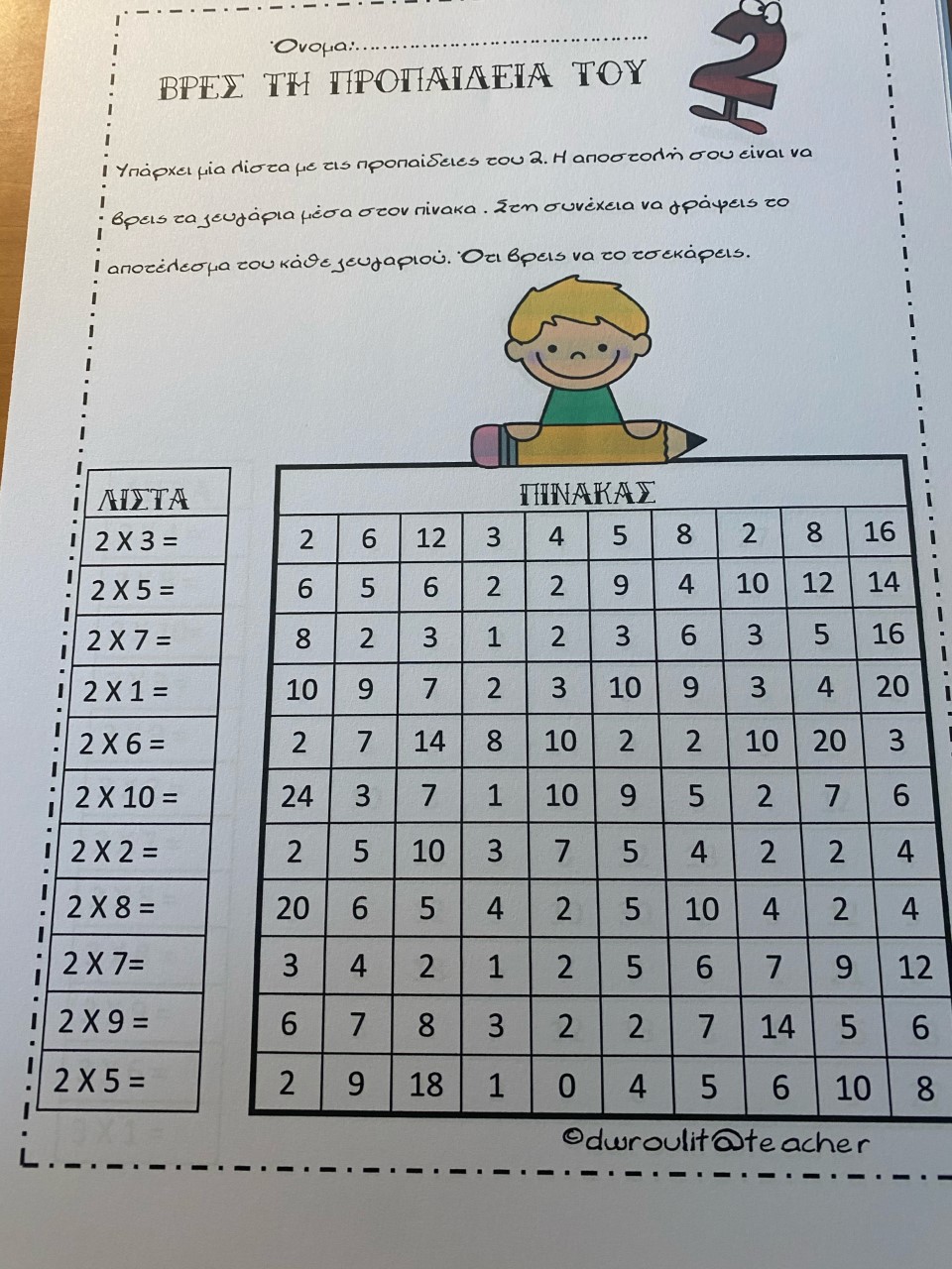 Άλλη μια δραστηριότητα αφιερωμένη στην προπαίδεια!!