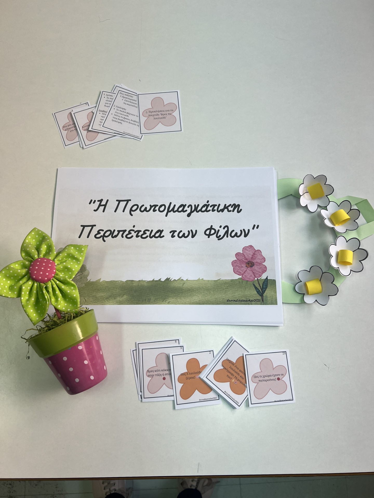 (για να γράψετε πίσω από κάθε λουλούδι μια μικρή πρόκληση ή αίνιγμα) - Μικρά δωράκια ή αυτοκόλλητα